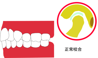 この場合、顎関節の下顎頭は関節窩の中心に位置しており、関節円板も下顎頭の上にしっかり載っています。